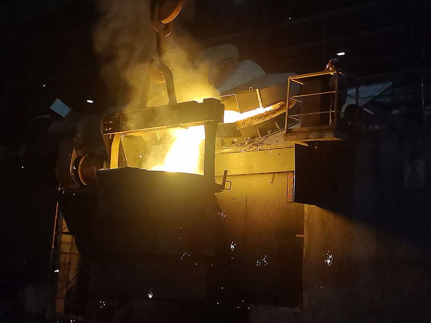 澆鑄現(xiàn)場(chǎng),電爐內(nèi)鐵水沸騰,傾瀉時(shí)濺起簇簇火花,宛如漫天星光,劃破夜色,